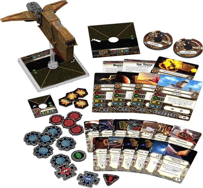 Ein grosses Schiff mit einem neuen interessanten 180° Feuerwinkel. Der schwerfällige Wandschrank des trandoshanischen Kopfgeldjäger Bossk hat zwar nur Wendigkeit 1, was ein Angriff eines Schwarms mit mehreren Jägern oder Clusterrakten sehr verwundbar macht, aber die Pilotenfähigkeiten, der Feuerwinkel und der grosse Stauraum für Aufwertungskarten macht das Schiff äußerst interessant. Auch kann man mit dem Titel "Reißzahn" nach der Zerstörung des Schiffes ein Z-95 absetzen und somit weiterspielen...