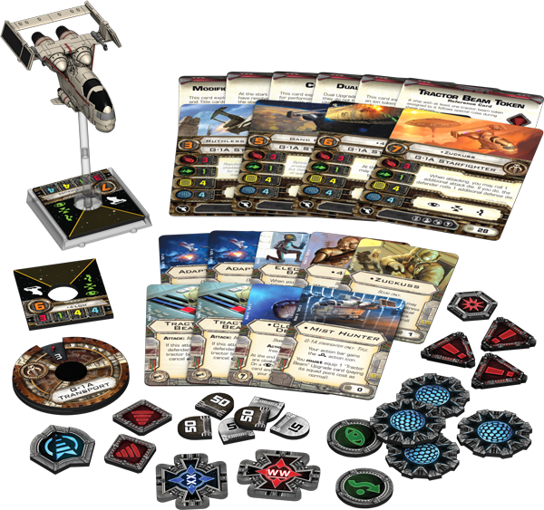 Der schwere Raumjäger G1-A wird in der nächsten Welle 8 veröffentlicht und hat mit 4 Hülle und 4 Schilde, sowie einen Angriffswert von 3 und Wendigkeit 1 eine Ähnlichkeit mit dem B-Wing der Rebellenfraktion. Und die B-Wings erleben gerade einen hohen Zuspruch. Die können viel aushalten und gut austeilen. Die neue Karte "Traktorstrahl" wird sicherlich einige neue Elemente ins Spiel bringen, sowie eine Tarnvorrichtung, die bisher dem Imperium vorbehalten war.